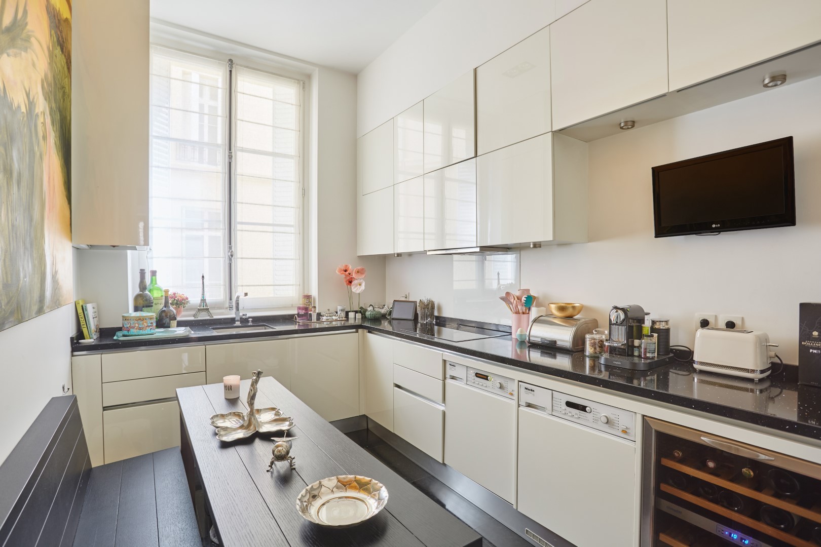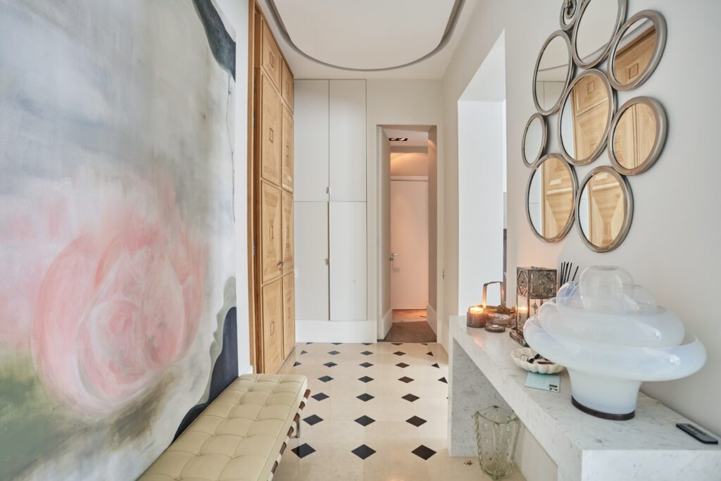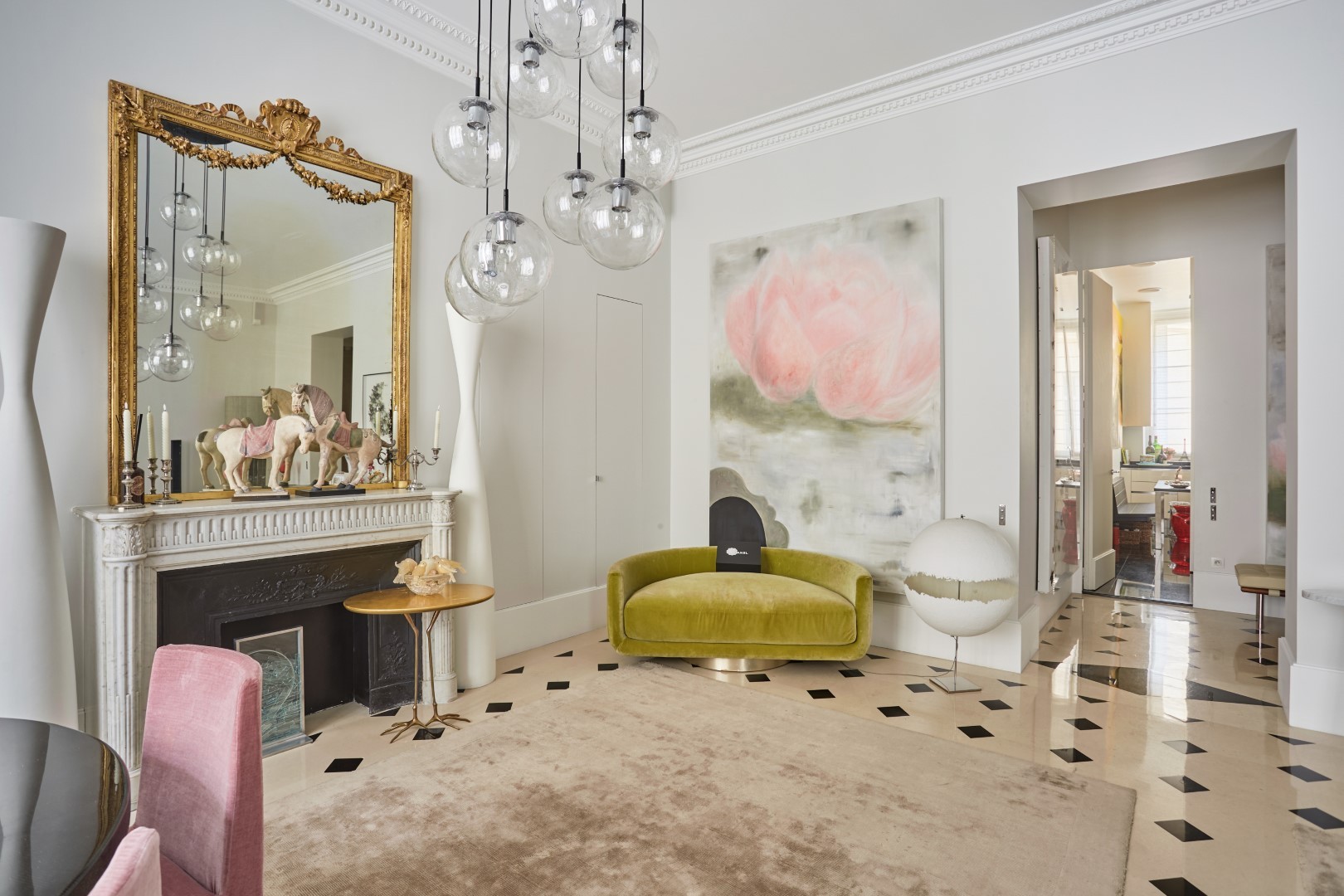 Dans un immeuble haussmannien de très grand standing, cet appartement de135,79m² en état neuf a été décoré de façon très contemporaine par une architecte de renom.