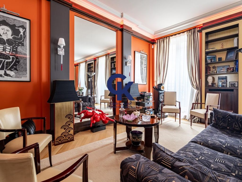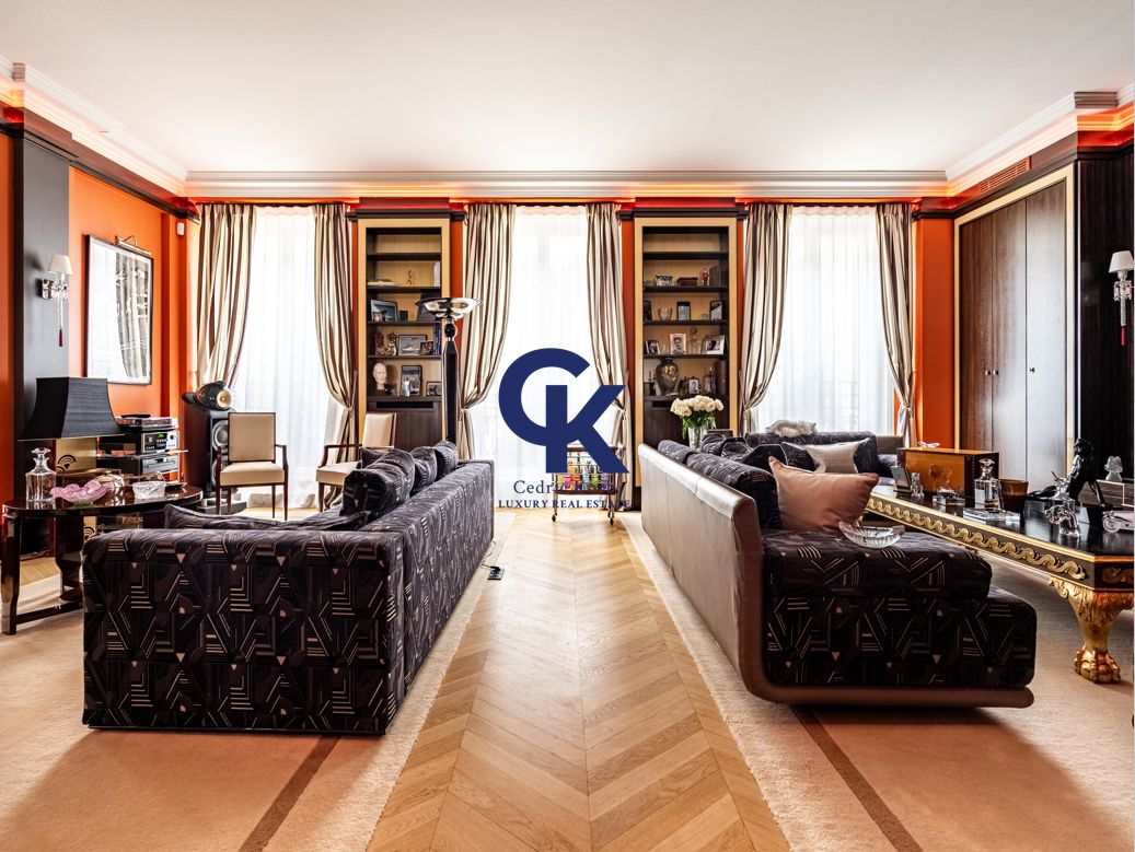 In the heart of the Golden Triangle and a stone’s throw from Place de l’Etoile In a beautiful Haussmann building, on the 3rd floor, sublime reception apartment of 192.12m² Carrez law completely renovated and decorated by a renowned architect.