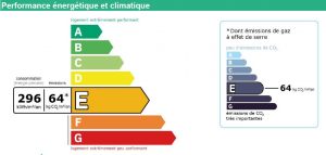 - DPE : 296(E) GHG: 64 (E)