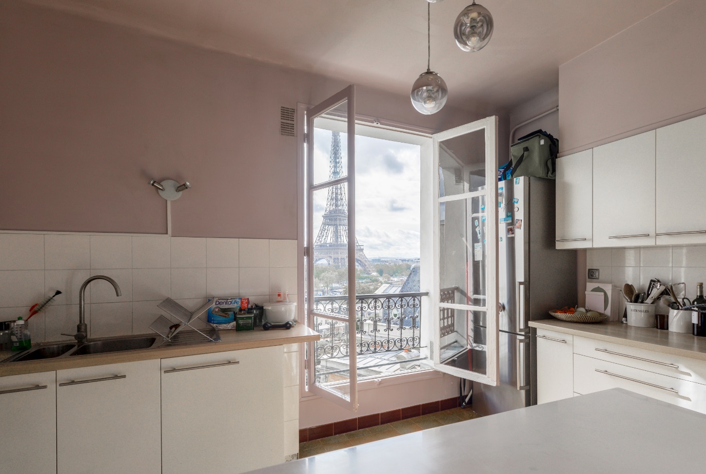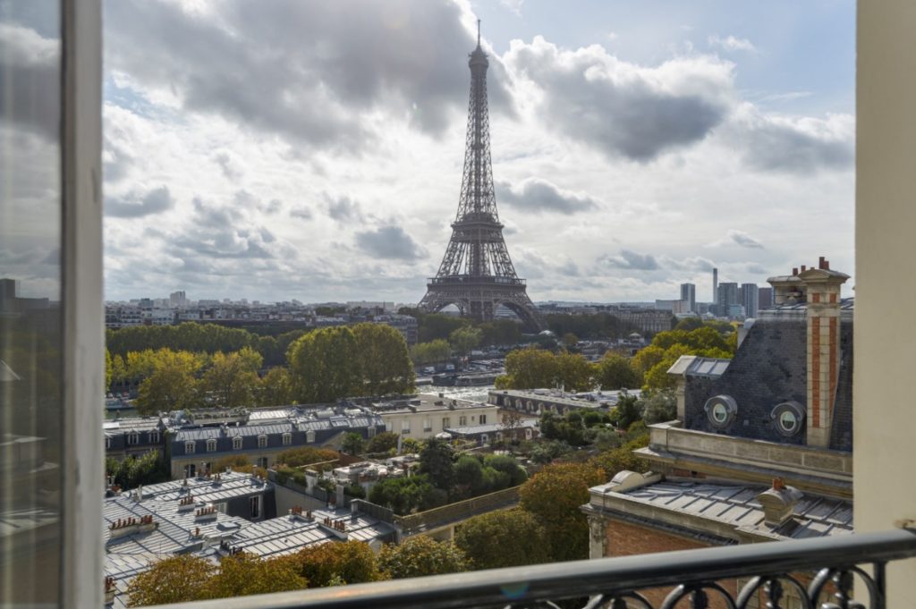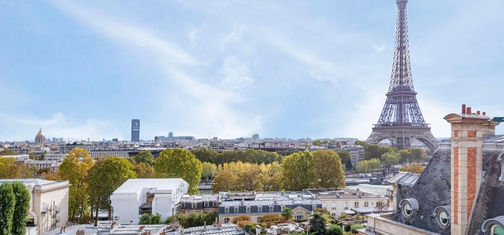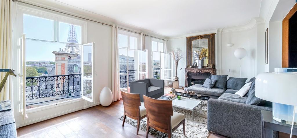 On the top floor of a beautiful Haussmannian building, an exceptional 140,14m² apartment offering a magical view of the Eiffel Tower and the Seine in all rooms, a rare property that has continuous sunshine and absolute calm.